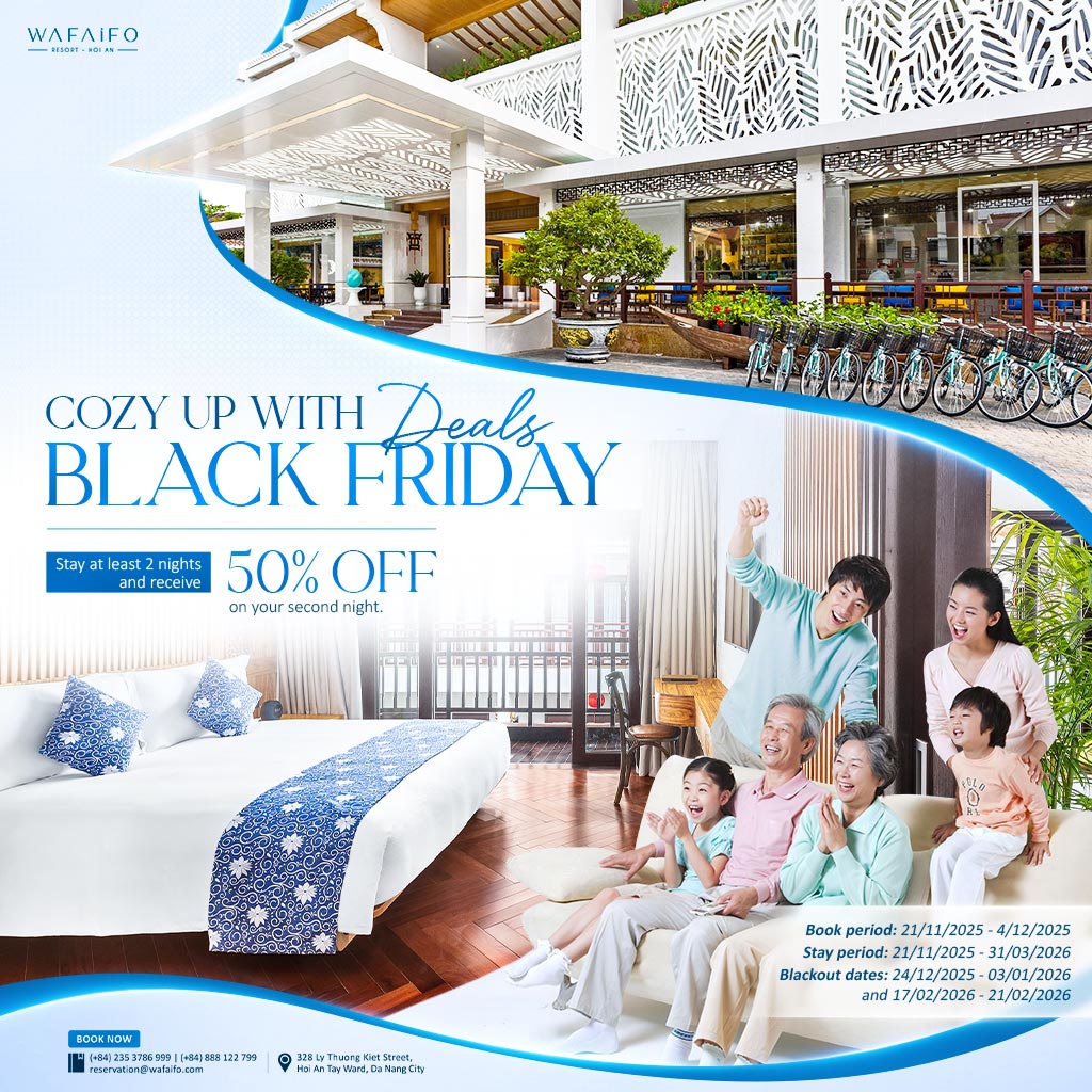 유네스코 세계문화유산으로 등재된 호이안 구시가지에서 도보로 단 10분 거리에 위치한 와파이포 리조트 호이안 (WAFAIFO RESORT HOI AN)은 현대적인 라이프스타일과 베트남 특유의 따뜻한 환대를 경험할 수 있는 공간으로 여러분을 초대합니다.